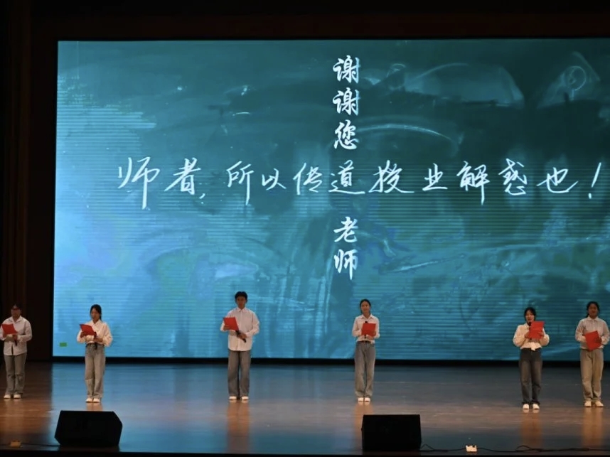 现代服务业学院李姿懿作为学生代表献词。她表示将遵循老师教诲,珍惜时光、勤学苦练,努力成长为有理想、有本领、有担当的新时代青年,以优异成绩回报师恩、奉献社会、报效国家。