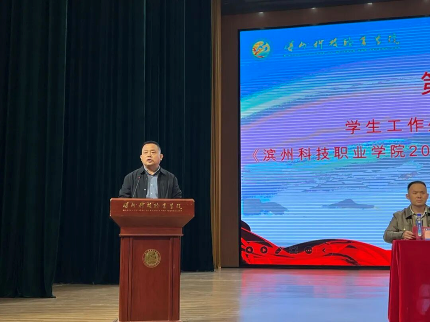 学生工作处处长胡全民宣读《滨州科技职业学院2025-2026学年宿舍长培训方案》,他鼓励宿舍长们要以身作则,主动发挥模范带头作用。宿舍长应与成员协同合作,多渠道推进学生自我管理和自我服务工作,结合专业特点提升社区管理水平,进一步夯实“一站式”学生社区建设,让育人成效更加鲜明。