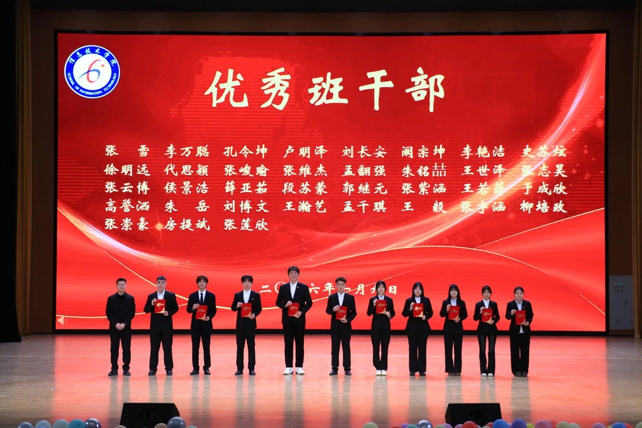 1月9日,信息技术学院“青春燃动·跃启新程”2026新年联欢会暨年度表彰大会在学校音乐厅举行。此次活动旨在总结过去、展望未来,通过表彰先进、展示才艺,进一步凝聚师生共识,营造积极向上、团结奋进的学院文化氛围,激励全体师生以更加饱满的姿态迎接新的一年。