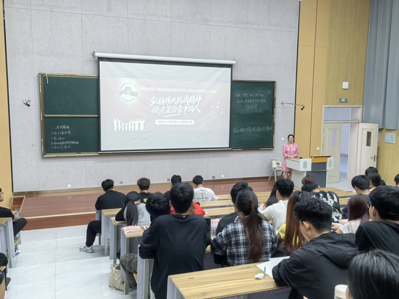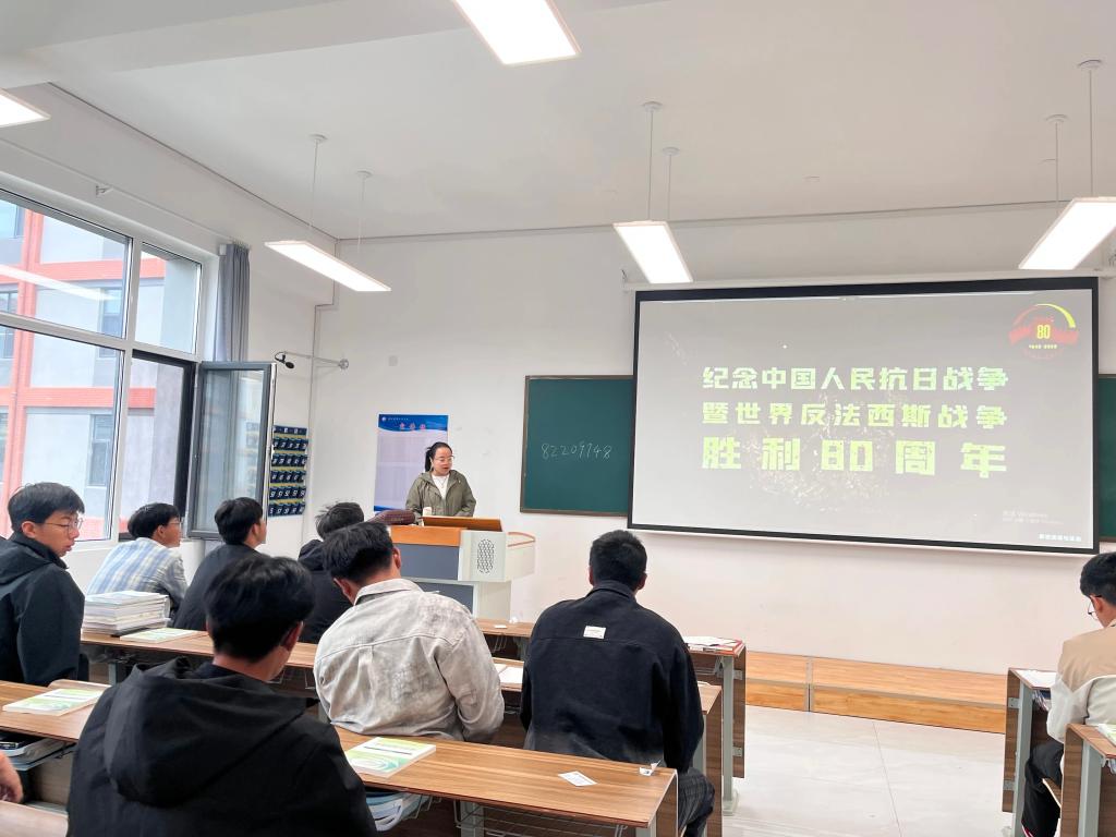 为深切缅怀革命先烈,弘扬伟大抗战精神,加强爱国主义教育,近日,我校马克思主义学院精心策划并组织开展了为期一个月的“铭记历史,开创未来——纪念抗日战争胜利80周年”主题大思政课系列活动。本次活动面向全校学生,旨在通过系统性的课程讲授与沉浸式的感悟交流,引导广大青年学子深刻理解抗战历史,汲取奋进力量。