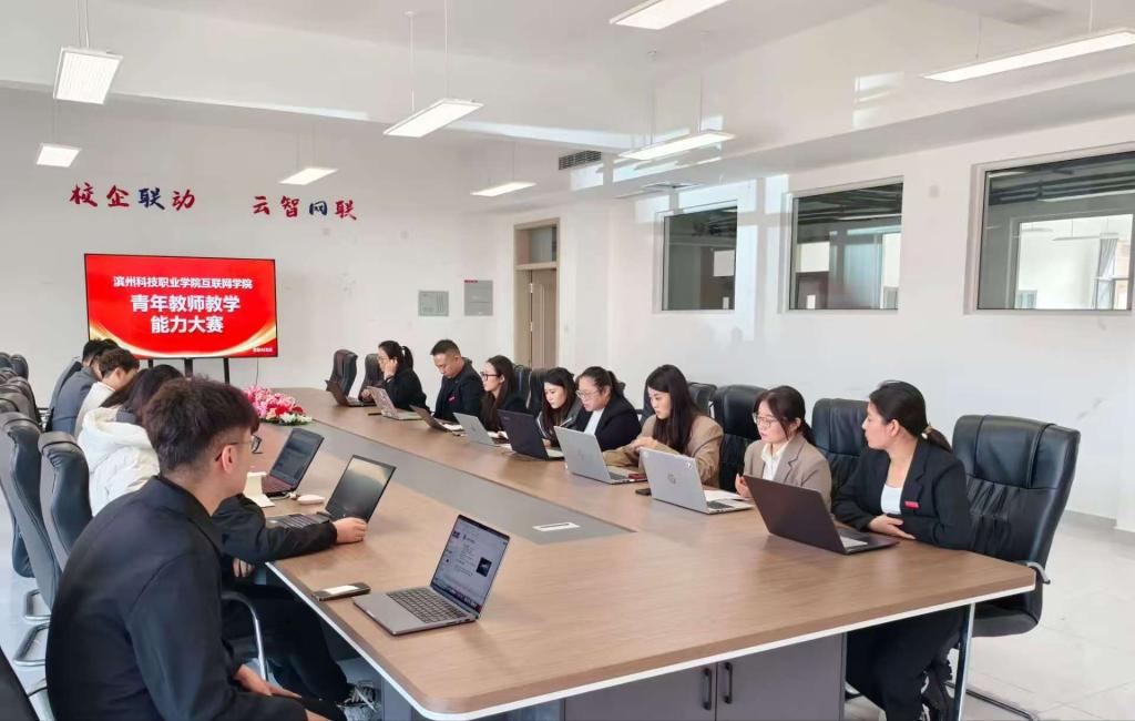为深入为深入贯彻“以赛促教、以赛促学”理念,同步落实学校《关于举办滨州科技职业学院 2025 年青年教师教学比赛的通知》精神,进一步提升青年教师教学能力与业务水平,搭建优质教学交流平台,近日,滨州科技职业学院互联网学院青年教师教学比赛选拔赛圆满落幕。学院院长沈燕宁、教学副院长谭策及各教研室主任组成评审组,全程参与赛事评审工作。