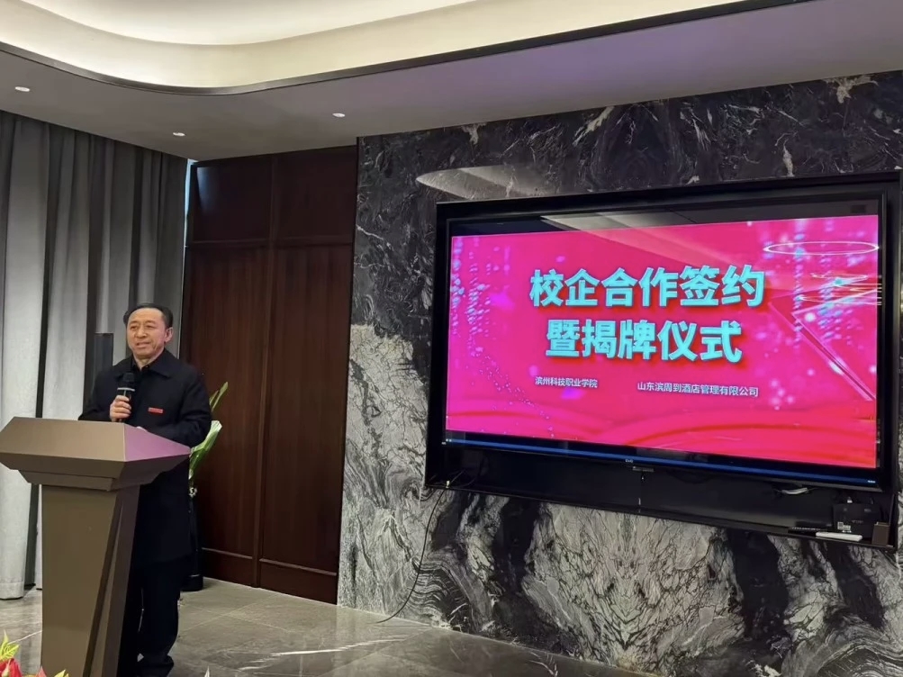 孙才顺在致辞中指出,此次合作是学校落实职业教育改革要求、推进“产学研用”一体化的关键举措。滨周到酒店管理有限公司作为区域高端酒店运营标杆,其在服务标准化建设、文旅项目运营等方面的实践经验,与我校现代服务业专业群的建设方向高度契合,通过共建实习基地,学校将进一步优化专业设置对接产业需求、课程内容对接职业标准的培养模式,为企业输送更多用得上、留得住、发展好的技术技能人才。
