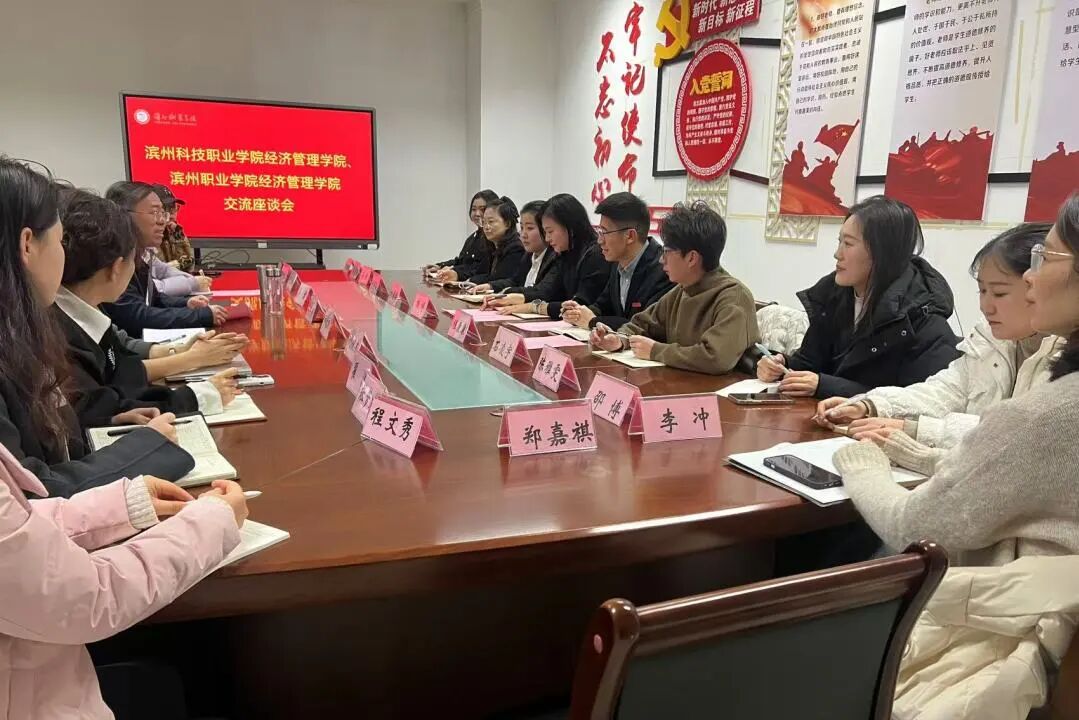 为赋能专业内涵提质,深化教革创新,近日,校长助理、经济管理学院院长杨婷率10名骨干教师,赴滨州职业学院经济管理学院开展交流研学。滨职经管学院党总支书记张格杨、教学副院长苟雪等10位同仁热忱接待,双方共话育人之道、共商合作新机。