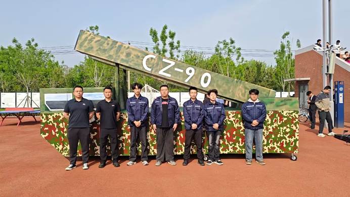 为展现滨州科技职业学院学子昂扬向上的青春风貌,彰显智能制造专业特色与育人成果,在学院院长李秀龙,党总支书记、副院长杨新新、副院长尹天瑞统筹安排下,学院辅导员李森、李昊翔、张尊琛带领学生干部凝心聚力、协同推进,由智能制造学院师生独立手工打造的大型“长征-90”模型惊艳亮相,成为赛场上一道独特的风景线。