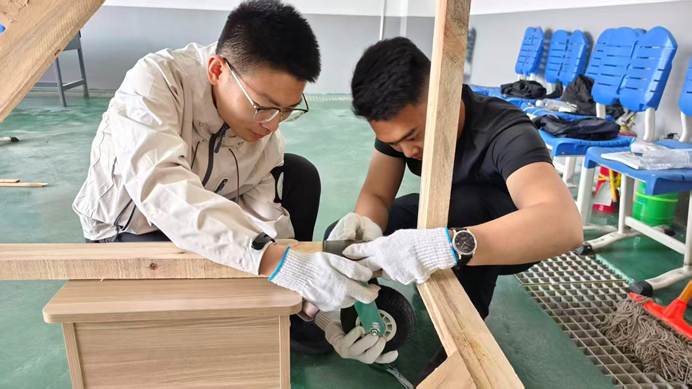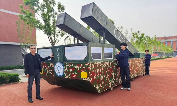 从最初的结构设计、纸板裁切,到框架搭建、部件组装,再到迷彩涂装、细节优化,每一道工序都凝聚着团队的智慧与汗水。师生们以“零误差”为目标,反复打磨、不断调试,将课堂所学的专业原理知识转化为实践成果,用纸板与螺丝钉搭建起“长征-90”的整体形态,用迷彩涂装赋予模型独特的视觉表达。