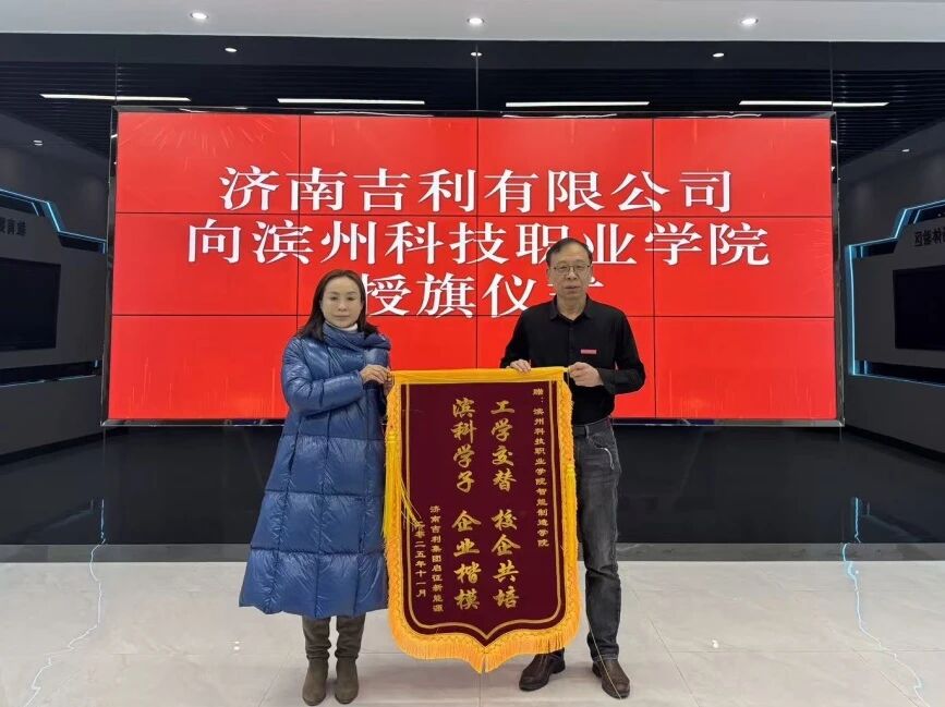 近日,济南吉利启征新能源有限公司向滨州科技职业学院进行授旗。济南吉利启征新能源有限公司负责人、智能制造学院院长李秀龙、实习就业中心主任李守峰共同出席仪式,见证双方深化产教融合、共育技术人才的重要时刻。