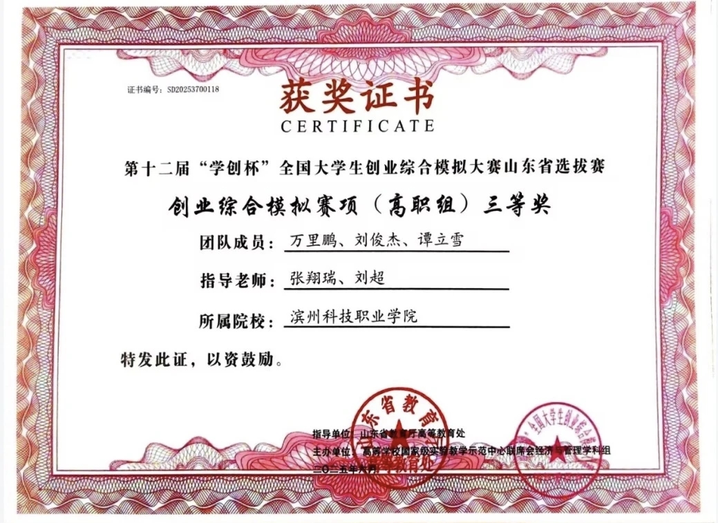 滨州科技职业学院晋级第十二届“学创杯”全国大学生创业综合模拟大赛决赛