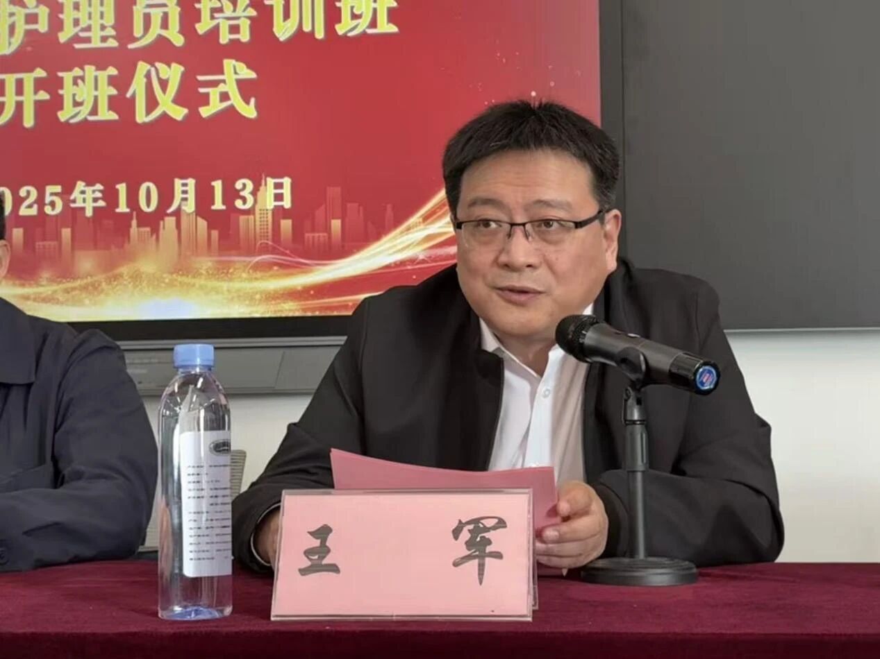 王军表示养老护理员既要懂老年生理护理、急救知识,也要懂心理关怀、情感陪伴。希望大家在接下来的培训中,认真钻研每一个知识点、每一项操作技能;结合日常工作中遇到的难题,主动向老师请教、相互交流;牢记自己肩负的“守护夕阳”的使命,把学到的本领真正用到服务老人的实践中。