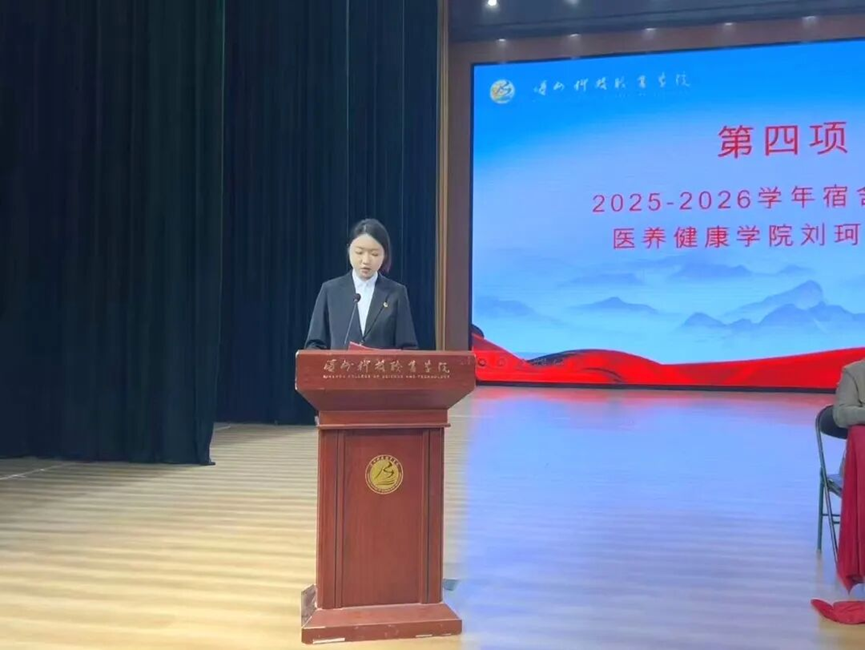 2025级宿舍长代表医养健康学院刘珂琪呼吁大家要以优秀学员为榜样,严格遵守培训纪律,主动钻研管理方法,牢记“自我管理、自我教育、自我服务、自我监督”要求,努力成为舍友信赖的“主心骨”,为建设和谐宿舍贡献力量。