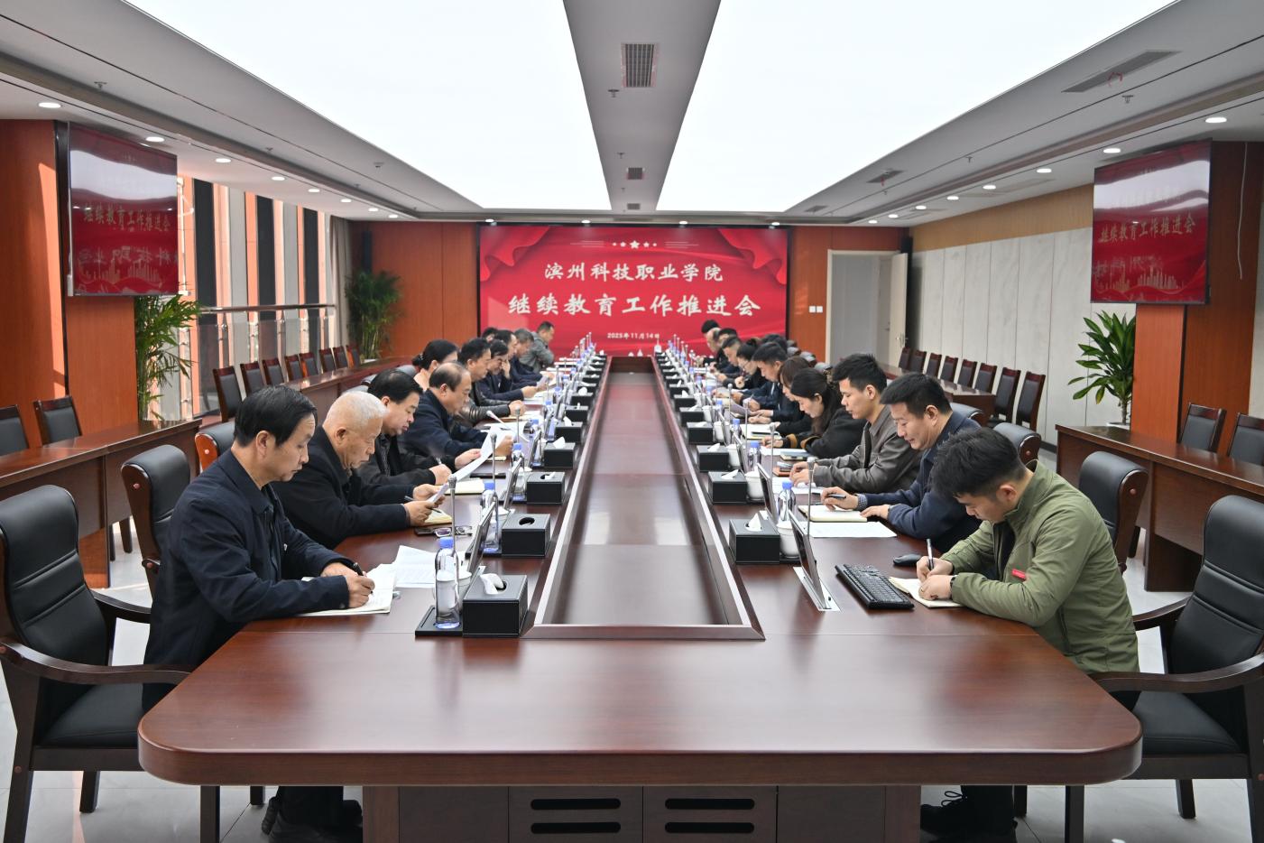 为进一步推动学校继续教育工作高质量发展,保障自考助学招生工作顺利开展,2025年11月14日,我校召开继续教育工作推进会。滨州渤海教育集团董事长刘相生,滨州科技职业学院执行校长孙才顺,党委委员、副校长刘曙明,党委委员,副校长吴启军,校长助理、经济管理学院院长杨婷出席会议,相关部门、各二级学院主要负责人参加会议。会议由执行校长孙才顺主持。