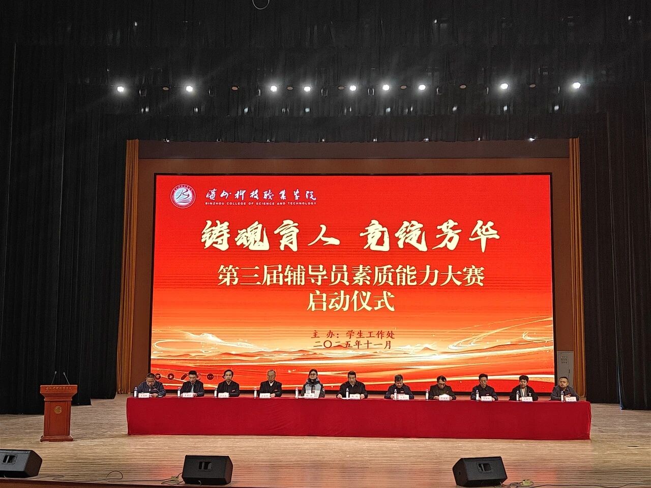为筑牢育人根基、锻造高素质学生工作队伍,11月18日,滨州科技职业学院举行第三届辅导员素质能力大赛启动仪式。党委书记韩锋,党委委员、副校长吴启军,校长助理、经济管理学院院长杨婷以及学生工作处、各二级学院相关负责人、全体辅导员及学生干部代表共同参加启动仪式,仪式由校团委书记王忠凯主持。