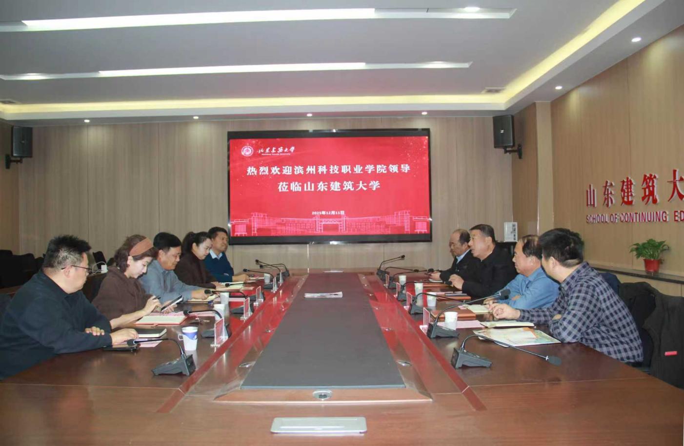 12月11日,滨州科技职业学院党委书记韩锋到山东建筑大学访问交流,该校党委书记杨景波亲切会见了韩峰一行。双方就深化校际合作、推动协同发展达成共识。山东建筑大学党委委员、副校长王清标陪同会见。