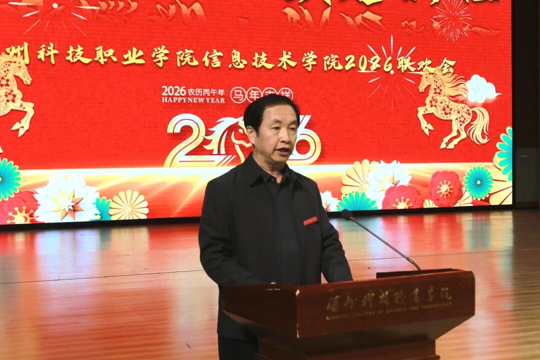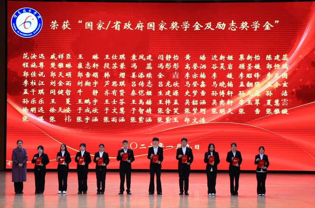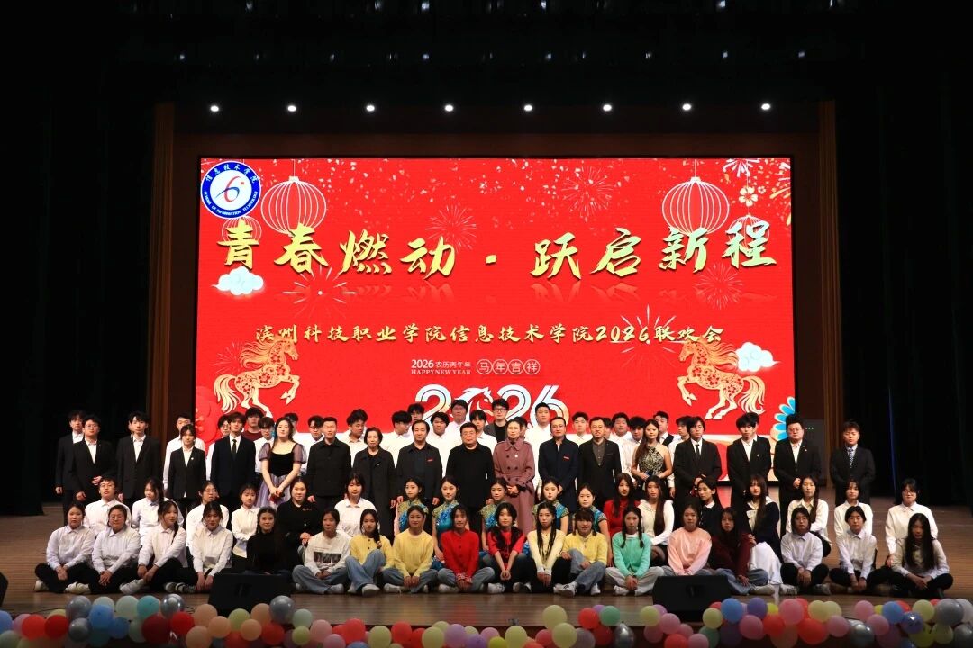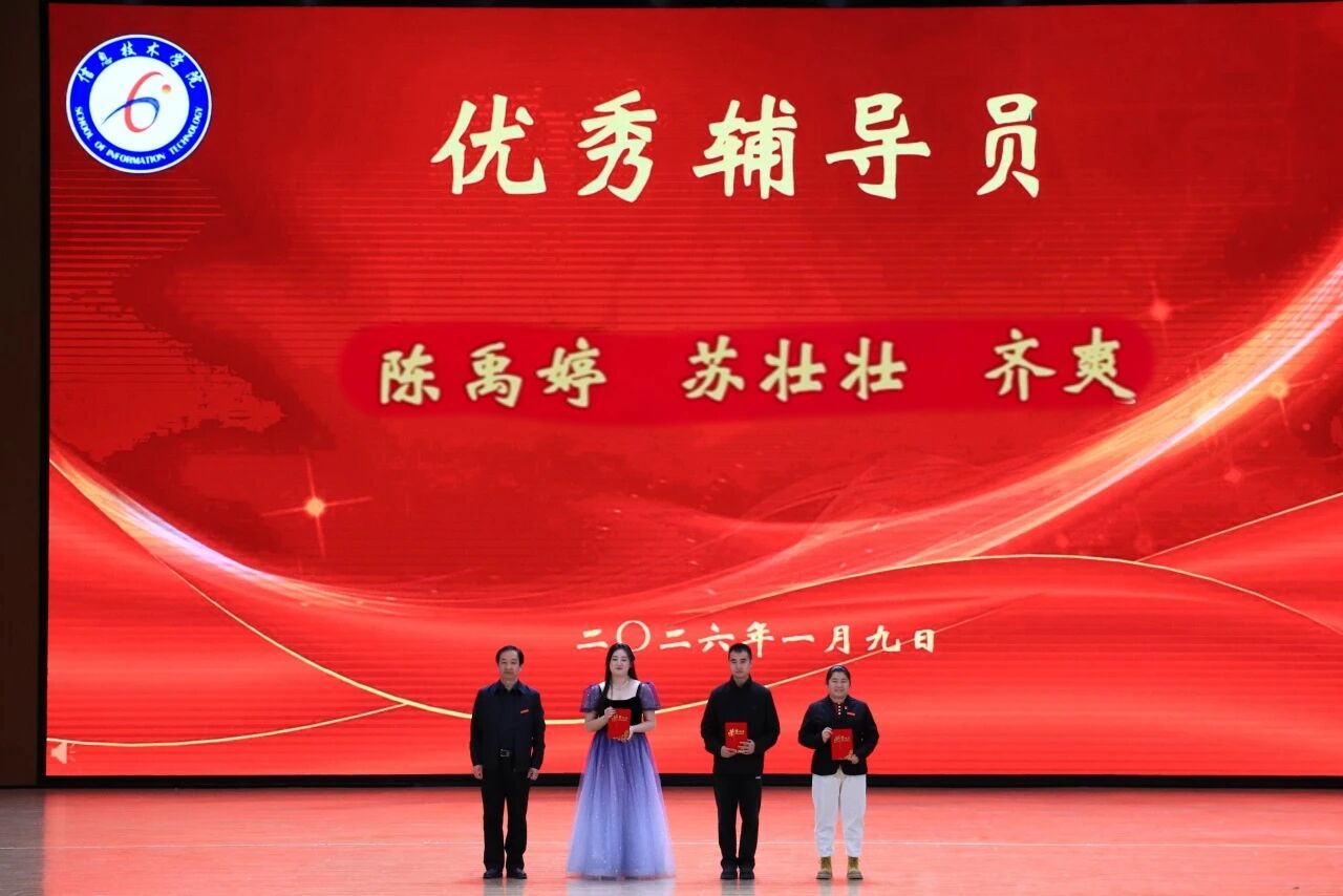 1月9日,信息技术学院“青春燃动·跃启新程”2026新年联欢会暨年度表彰大会在学校音乐厅举行。此次活动旨在总结过去、展望未来,通过表彰先进、展示才艺,进一步凝聚师生共识,营造积极向上、团结奋进的学院文化氛围,激励全体师生以更加饱满的姿态迎接新的一年。