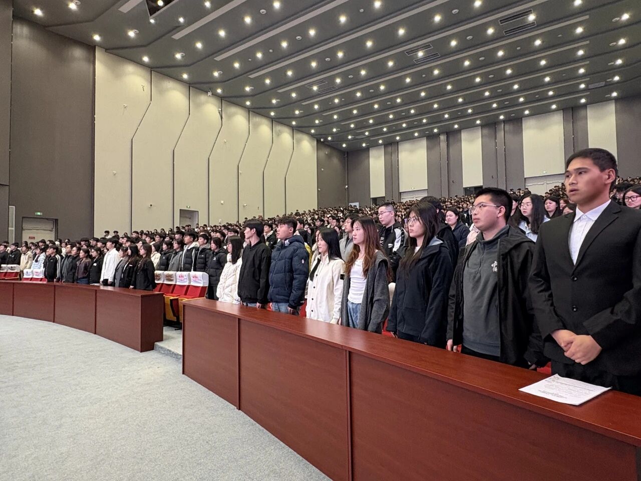大会在庄严的国歌声中拉开帷幕,全体人员肃立奏唱国歌,激昂的旋律激发着每位师生内心的责任感与使命感。