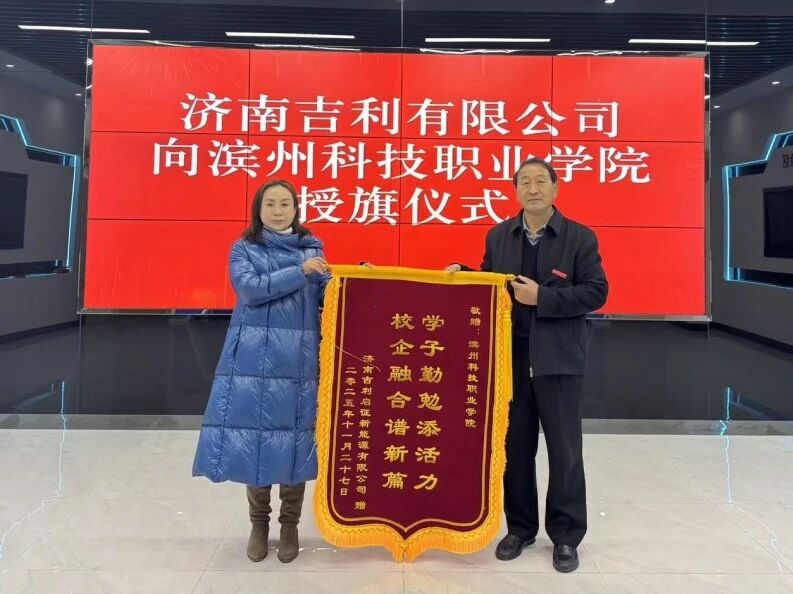 近日,济南吉利启征新能源有限公司向滨州科技职业学院进行授旗。济南吉利启征新能源有限公司负责人、智能制造学院院长李秀龙、实习就业中心主任李守峰共同出席仪式,见证双方深化产教融合、共育技术人才的重要时刻。
