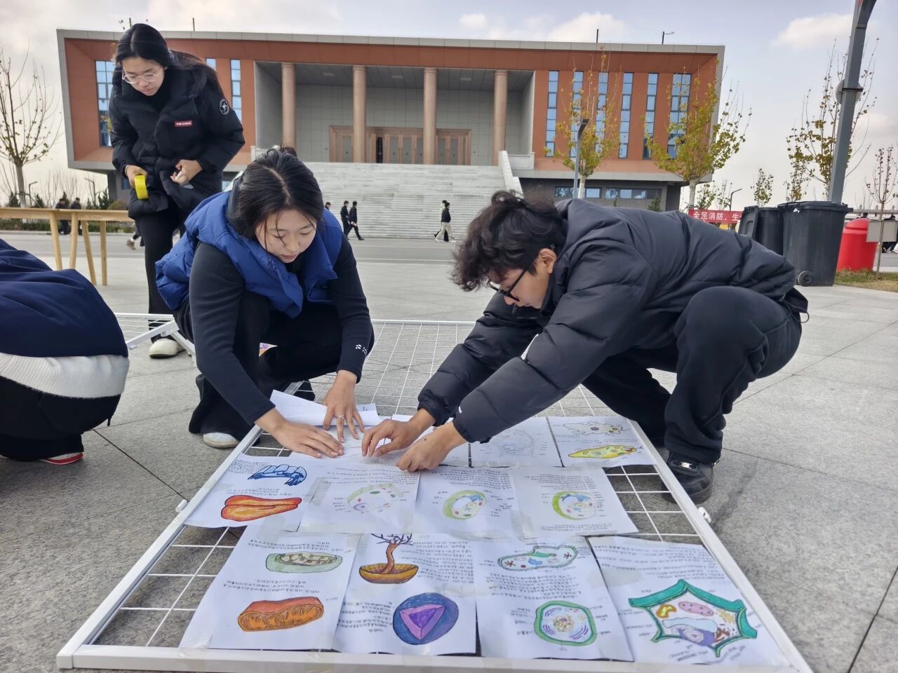 活动现场,一幅幅色彩鲜明、细节清晰的细胞结构图有序陈列,细胞膜、细胞核到细胞器的形态结构以画作形式呈现,搭配通俗易懂的科普解读,让参观同学直观清晰地了解细胞的组成与功能。
