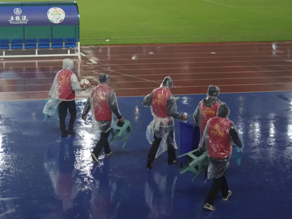 比赛日,他们提前7小时冒雨到场。认真检查每一颗备用球的气压,在湿漉漉的场边仔细摆放球架,互相整理好被雨水打湿的衣角。当裁判吹响哨声,他们的“战斗”也同步打响。足球一旦出界,小小的身影便立刻在积水的草皮上飞奔,不顾溅起的泥水,第一时间将球精准送达球员手中。中场休息,他们又冒雨更换备用球,用自己的汗水与热情,守护着这场雨中赛事的热血与感动。